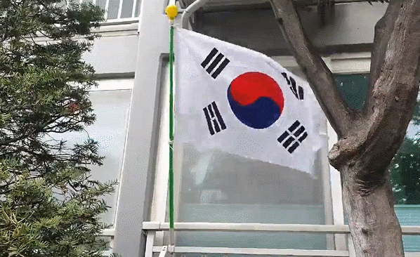 바람이 부니 태극기도 휘날리네요. 태극기 게양 시간은 일반 가정의 경우 오전 7시부터 오후 6시까지 달게끔 안내하고 있습니다.