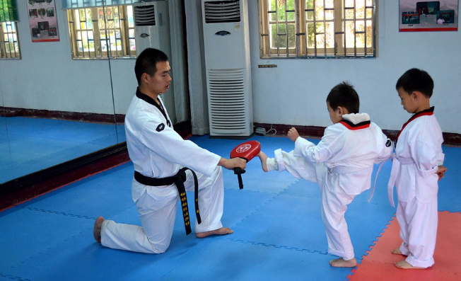 - 빨간띠: 태극6장, 태극7장, 태극8장을 배우고 뒤차기를 함께 습득합니다.