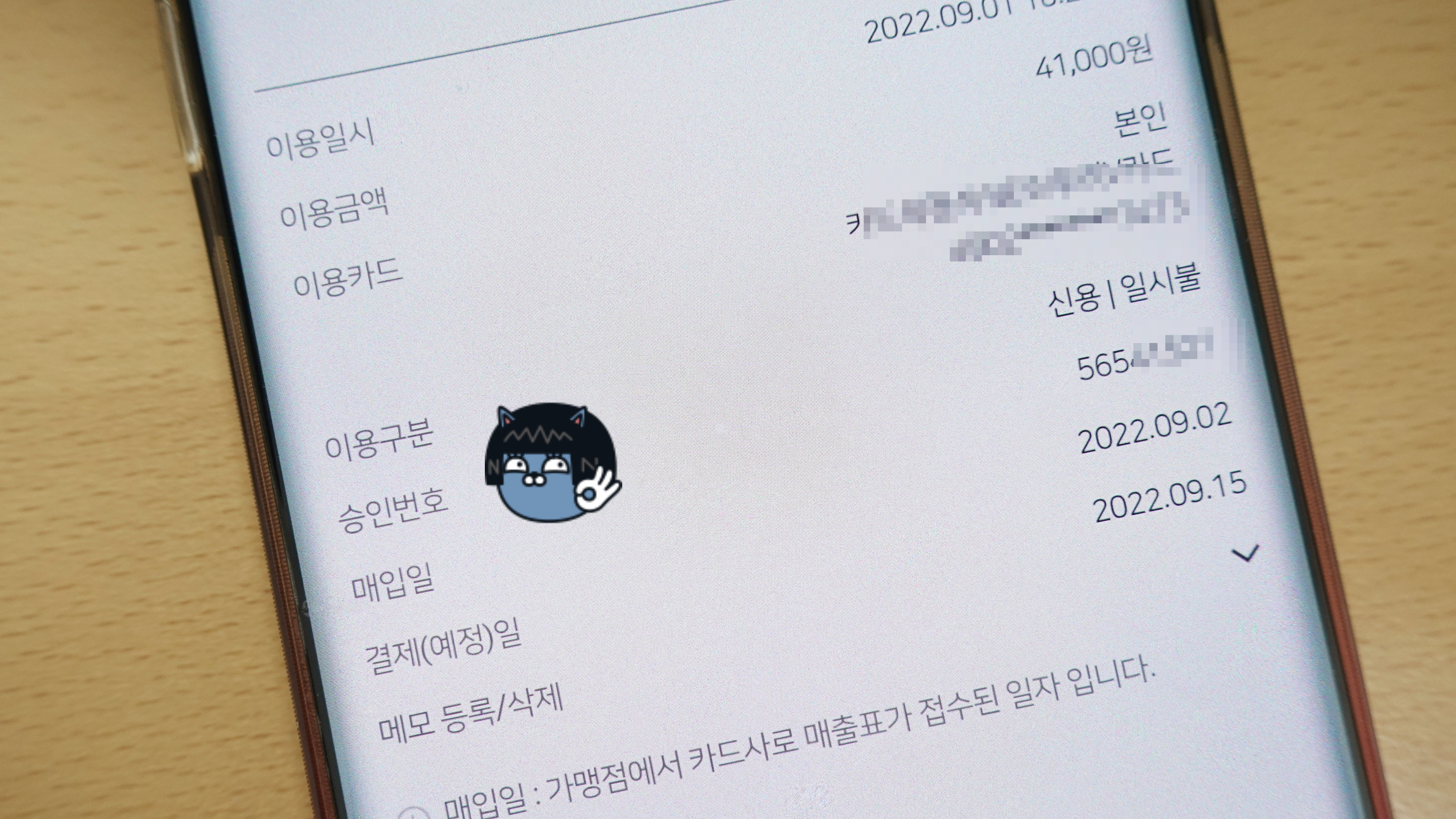 이런 경우엔 사용한 카드사 APP을 통해서 결제한 내용에 대한 승인번호 확인이 가능합니다.