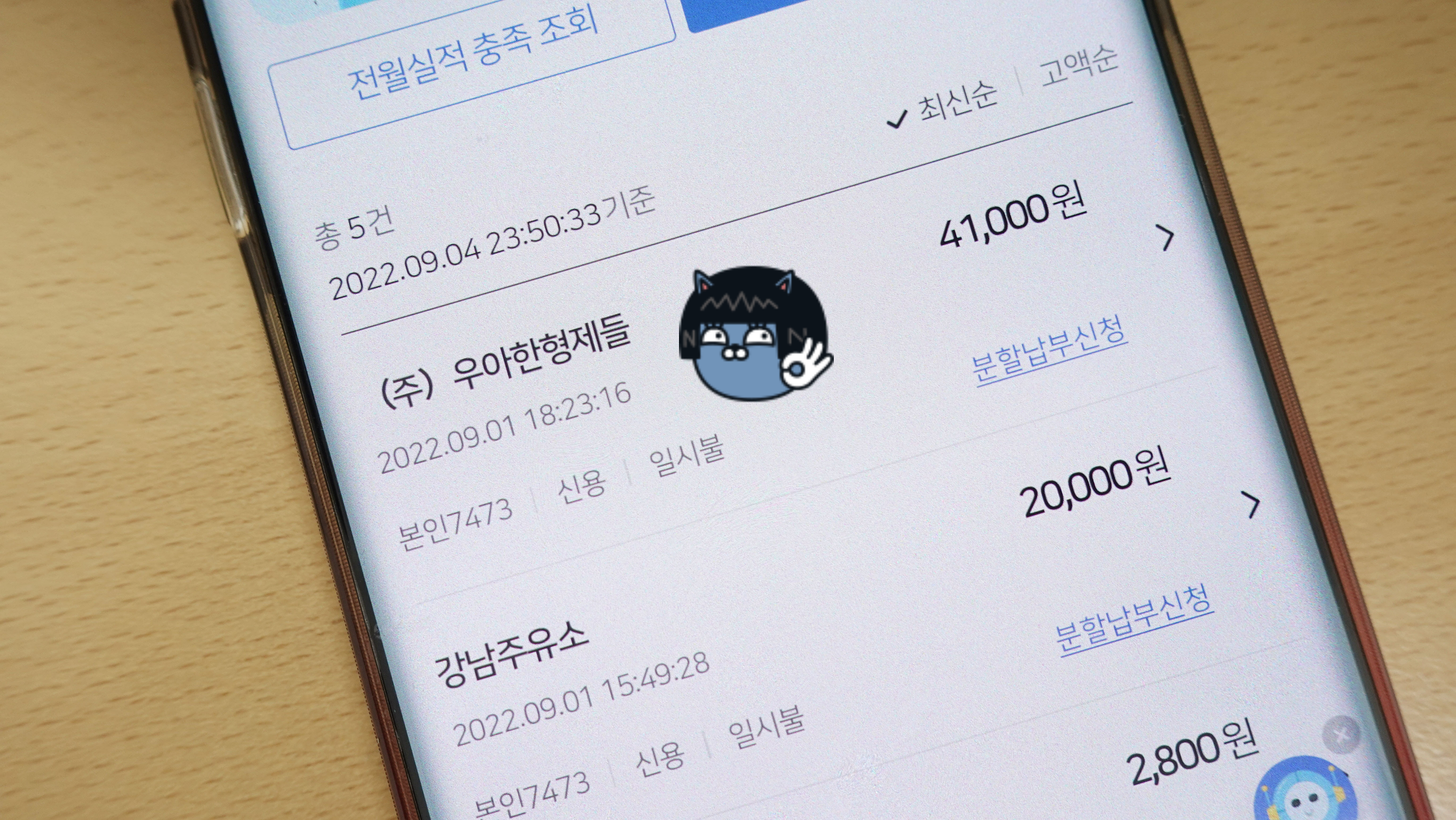 예시로 든 우리카드와 국민카드 뿐만 아니라 삼성카드, 현대카드, 롯데카드, 신한카드 등 모두 확인 가능합니다.